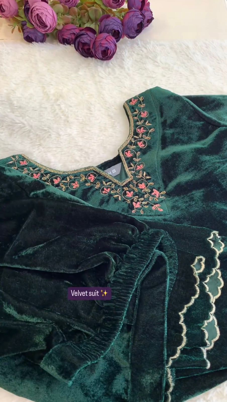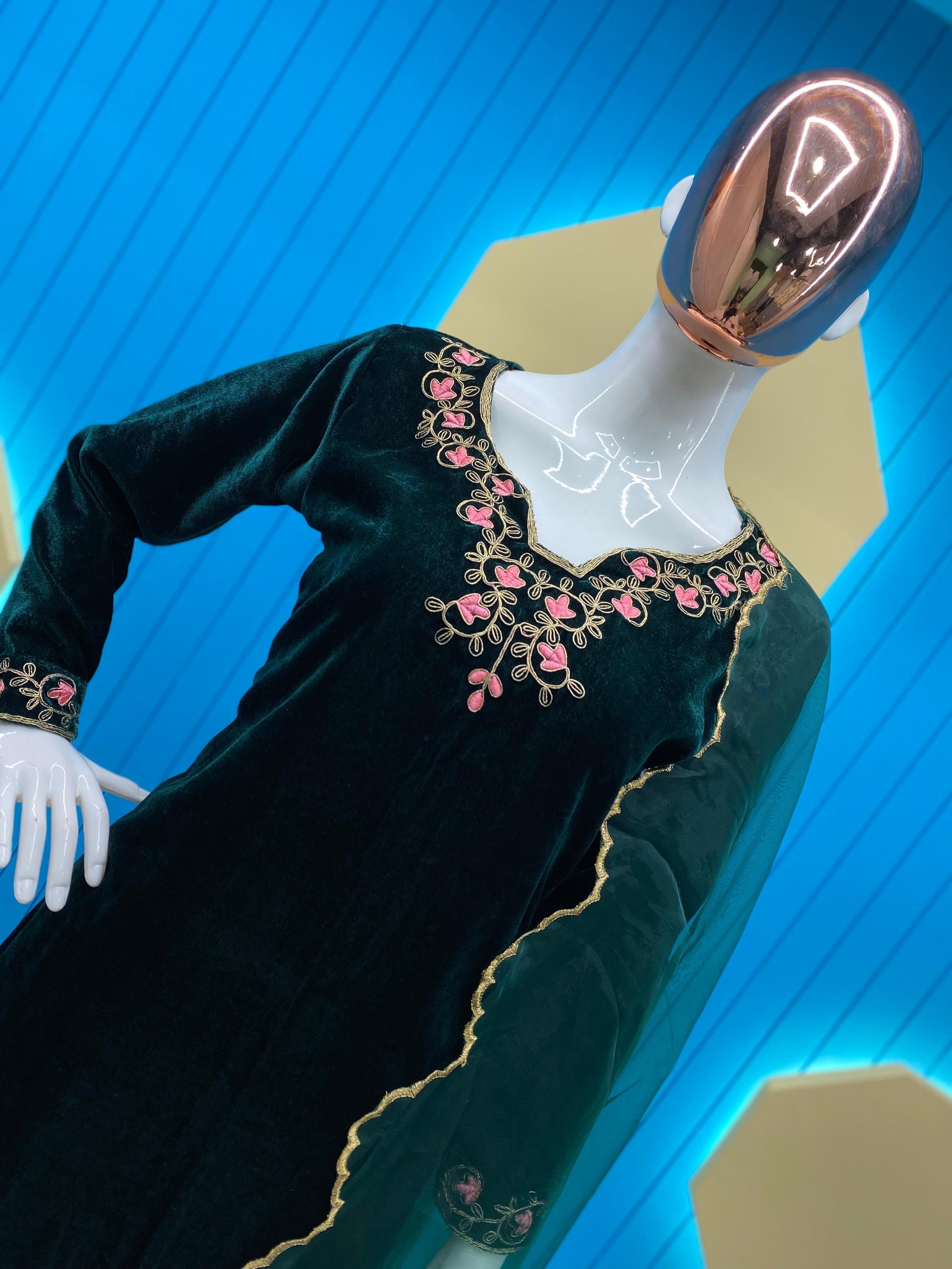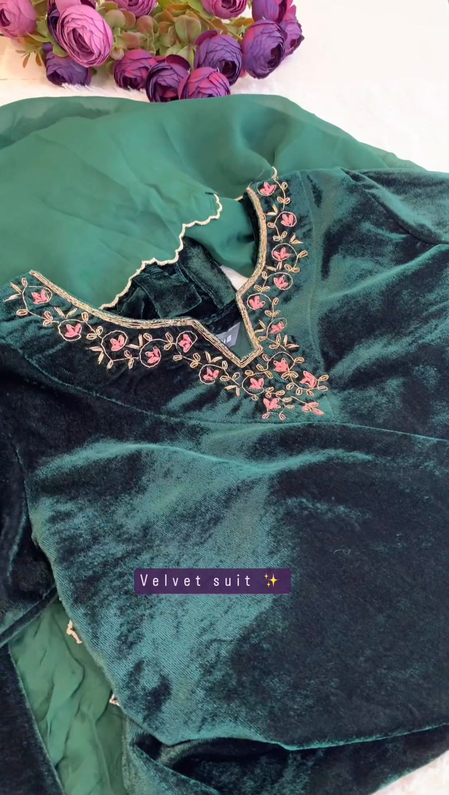 Green Best Quality Velvet Kurti Pent dupatta set for women