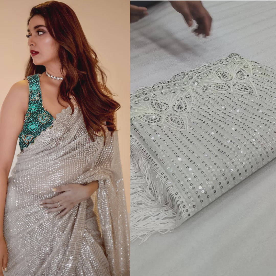Heavy Quality Mono net fabric with beautiful 5mm sequence & Multy Embroidery work & Cutwork Border in Saree