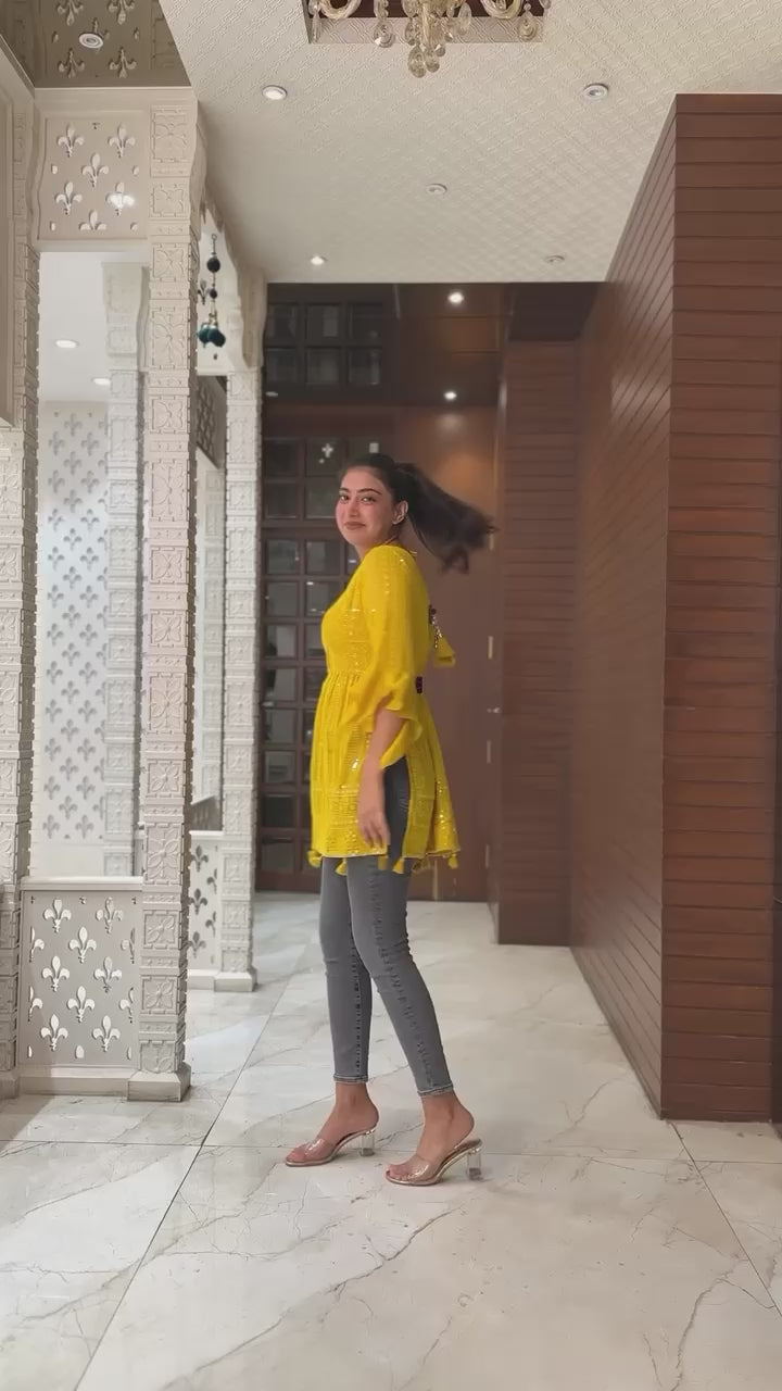 Yellow Women Kurti Dhoti Dupatta Set for party wear